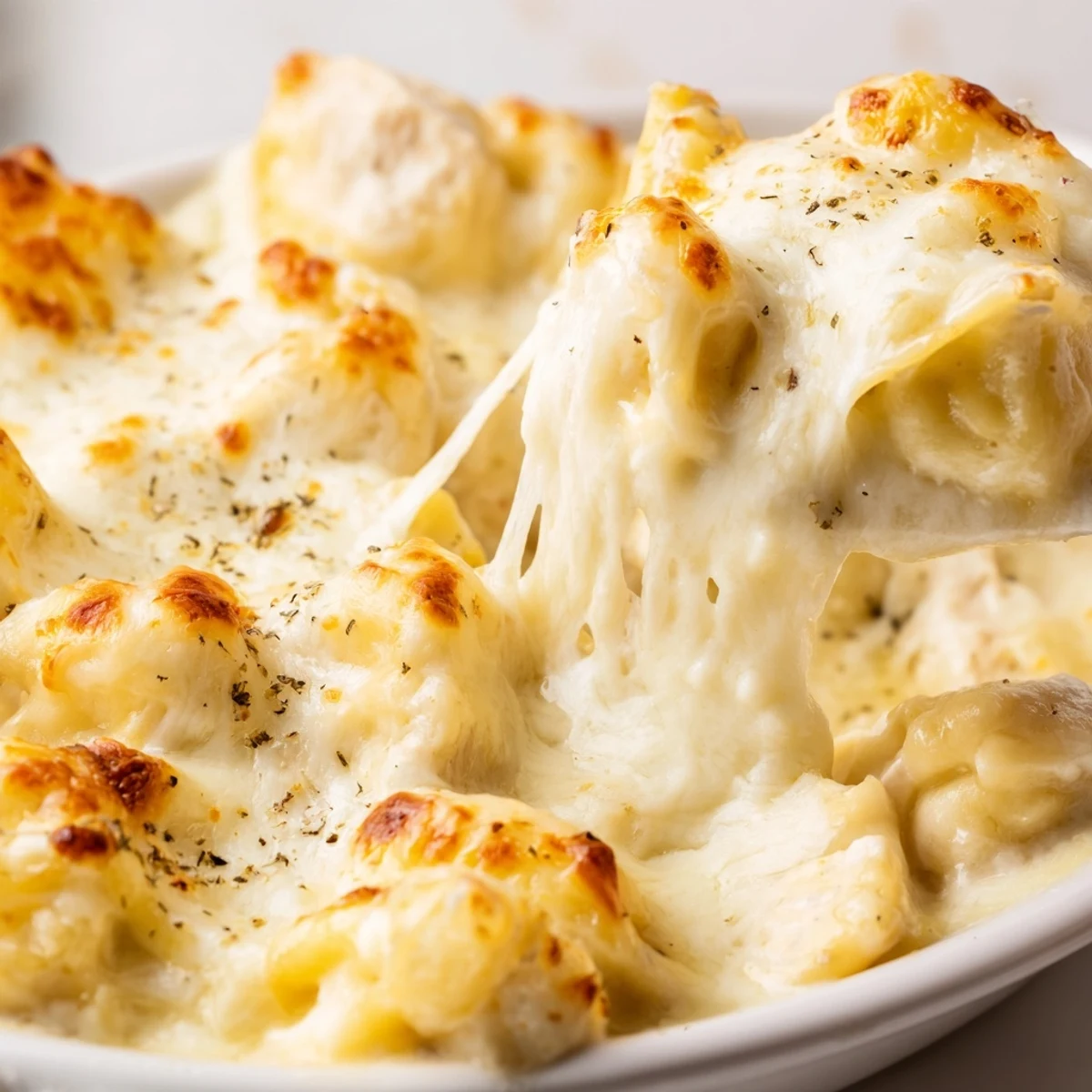 This comforting Italian-American casserole features tender cheese ravioli tossed with juicy shredded chicken and rich, creamy Alfredo sauce. The mixture is layered in a baking dish and generously topped with melted mozzarella and freshly grated Parmesan cheese, creating a golden, bubbly crust that's incredibly satisfying.