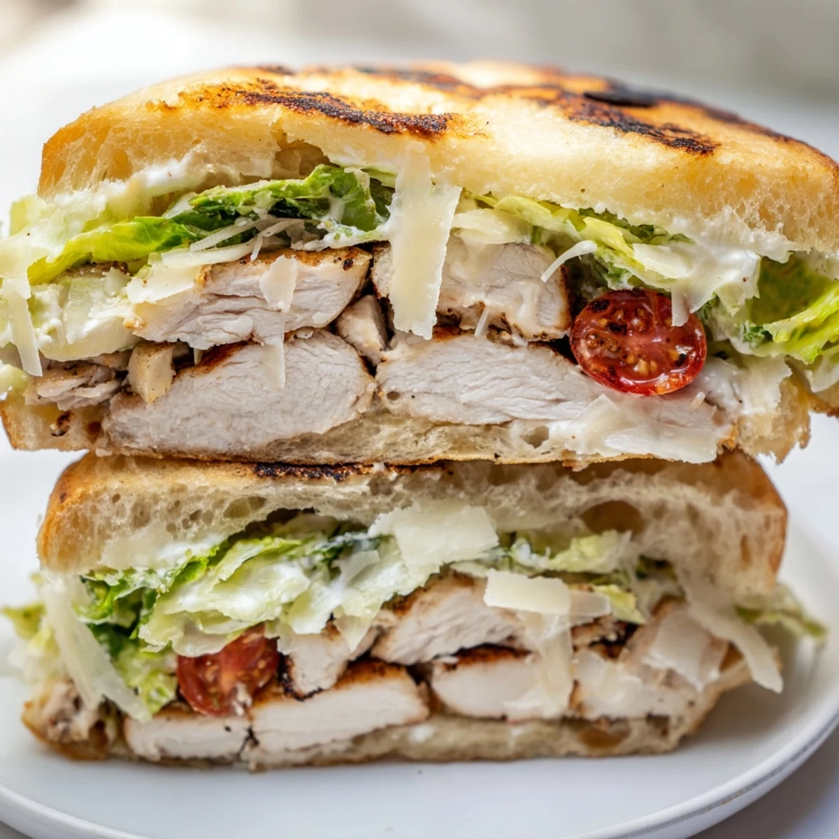 This satisfying handheld combines juicy seasoned chicken breasts grilled to perfection with a rich, tangy Caesar dressing made from mayonnaise, Parmesan, lemon, and garlic. Piled high on butter-toasted ciabatta rolls with crisp shredded romaine and extra shaved Parmesan, these substantial sandwiches deliver all the flavors of the classic salad in portable form. The entire assembly comes together in just 30 minutes, making it perfect for quick lunches or casual dinners.