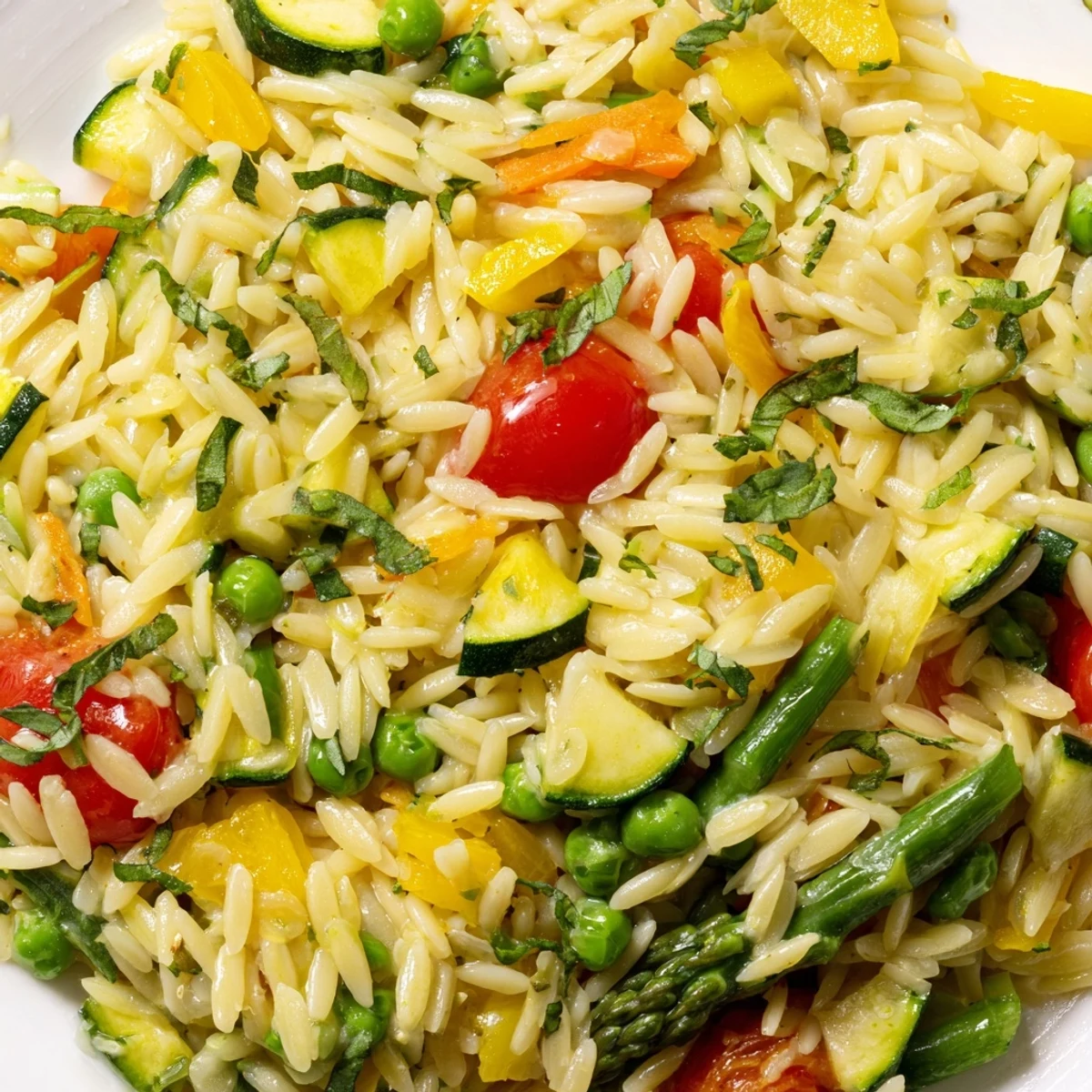 This colorful Italian-inspired dish combines small rice-shaped pasta with a medley of fresh spring vegetables. Tender orzo gets tossed with crisp zucchini, sweet cherry tomatoes, vibrant bell pepper, and delicate asparagus pieces. The light sauce comes together with reserved pasta water, grated Parmesan, fresh lemon zest and juice, creating a creamy coating without heavy cream. Fresh basil and parsley add brightness, while garlic provides aromatic depth. The entire dish comes together in just 35 minutes, making it perfect for weeknight dinners.
