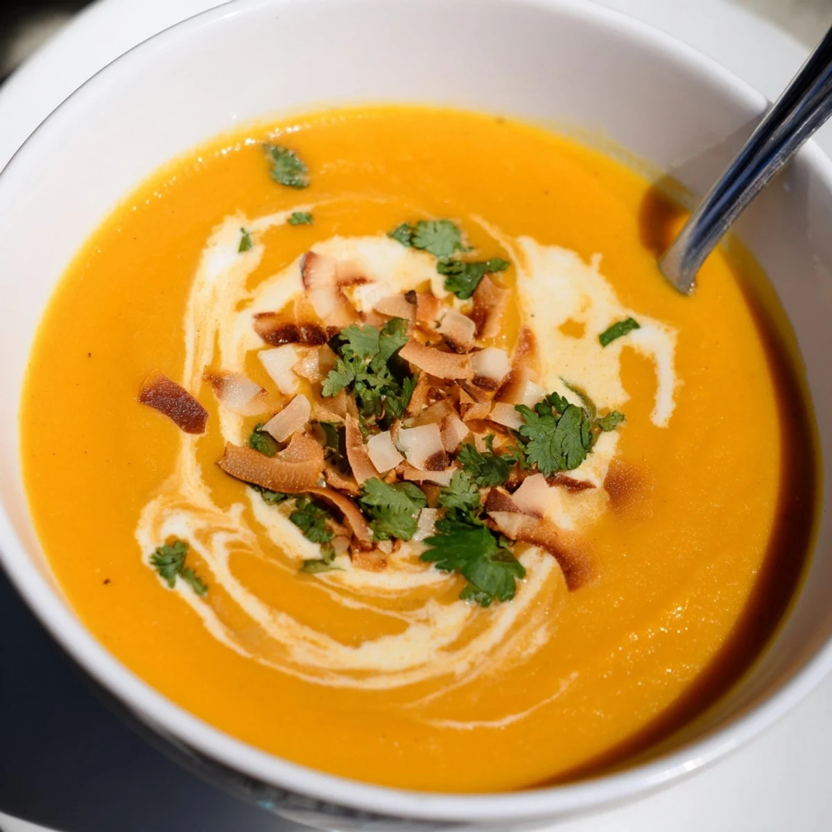 Roast chopped carrots, onions, garlic, and ginger with cumin and coriander until caramelized. Simmer the vegetables in vegetable broth to deepen the flavors, then blend until silky smooth. Stir in full-fat coconut milk and fresh lime juice for a rich, tangy finish. Garnish with fresh herbs, toasted coconut flakes, or pumpkin seeds before serving hot.