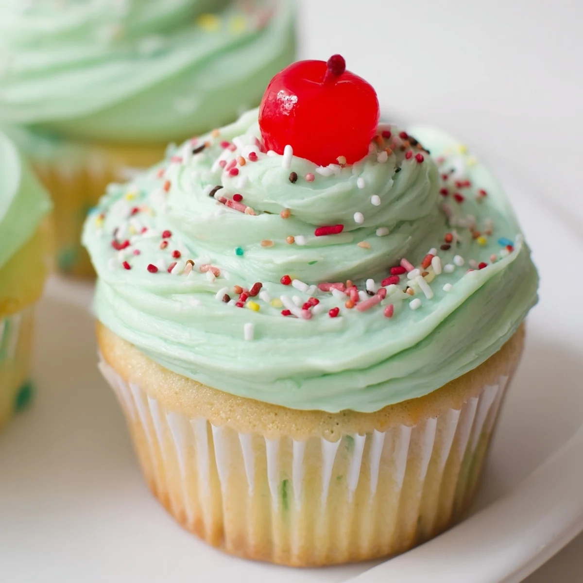 May your kitchen be filled with the scent of mint and butter, and may these green cupcakes bring a little luck to your table.