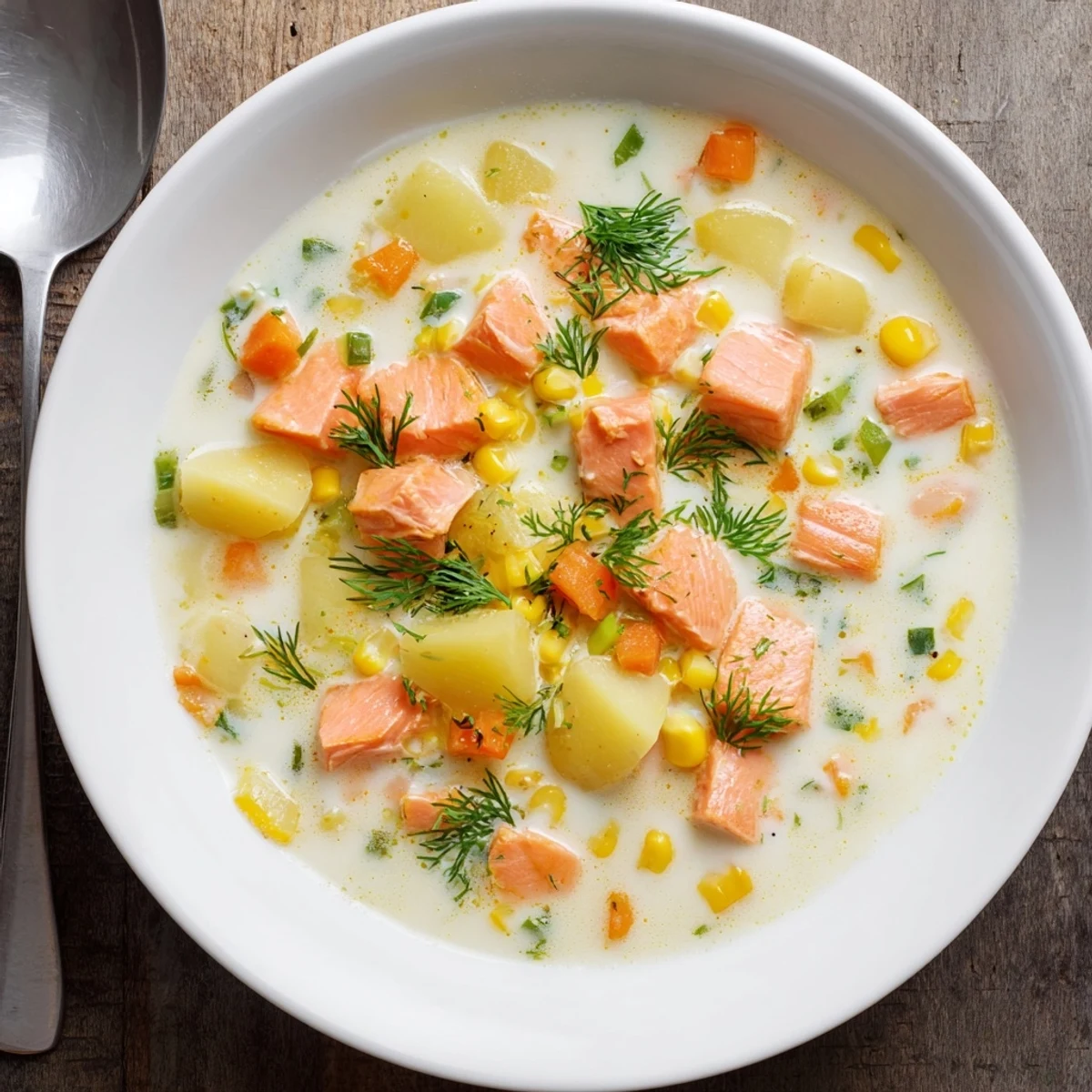 This hearty bowl combines smoky salmon with tender potatoes and sweet corn in a creamy base. Ready in just 50 minutes, it's an ideal choice for cold weather dining. The smoked salmon adds depth while the vegetables provide texture and sweetness. Perfect served with crusty bread and a crisp white wine.